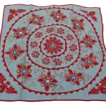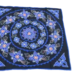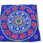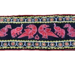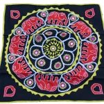 This famous applique craft of flowers and elephants with mirrorwork on black cotton cloth hails from the southern part of India. A craft that originated as a temple art now finds application in a wide range of household, decorative and ceremonial products. The applique items are mainly used during processions of the deities in their various ritual outings. The motif used consists of stylized representations of flora and fauna as well as a few elephant figures. In some, we find just the floral pattern, and some have floral with elephants on it. Craftsmen use different kinds of stitches to attach the different floral motifs. It can be used on the Altar place or to cover the table, wall, or ceiling of any room.