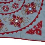 Craftsmen use different kinds of stitches to attach the different floral motifs. It can be used on the Altar place or to cover the table, wall, or ceiling of any room. The appliques used are made by Upcycling the remnants from the tailored cloth.