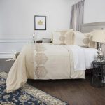 Clean lines, classically tailored with impeccably embroidered damask motifs, this flax/cotton blended duvet cover is classic and timeless. Covered button closure borders the metallic infused embroidered accents; those motifs are mirrored in a smaller scale on the shams. Sporting just a glint of shimmer, Alysa can be dressed up to Great Gatsby bling or be a hint of flirt in a classically traditional decor. Four interior ties secure the duvet filler preventing bunching and shifting of the filler with use. Shams feature split backs for ease of filling.